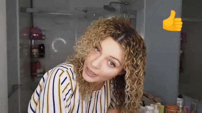 Once the gel sets, scrunch out the crunch (SOTC) to soften the hold and make your curls feel touchable.
